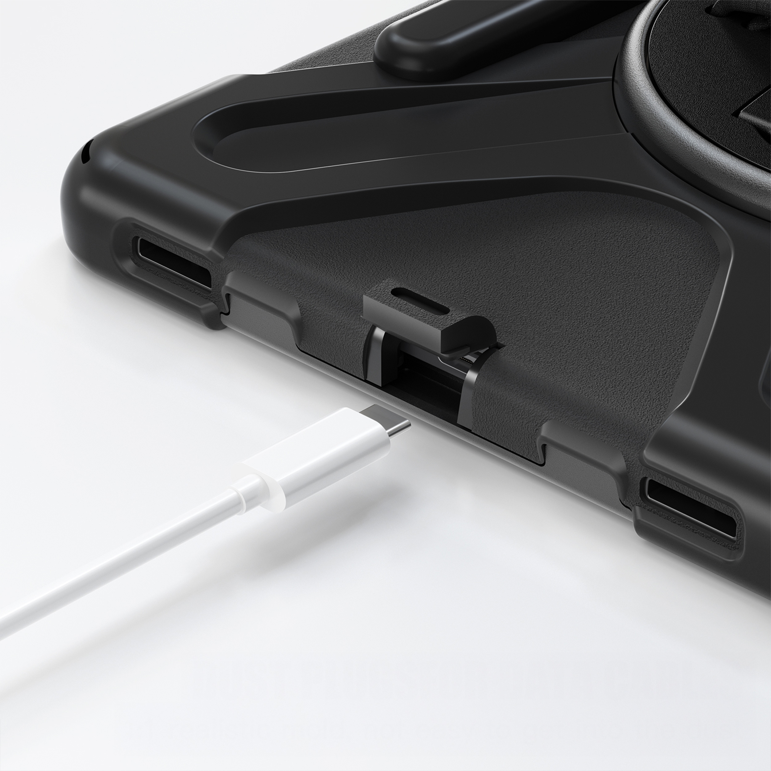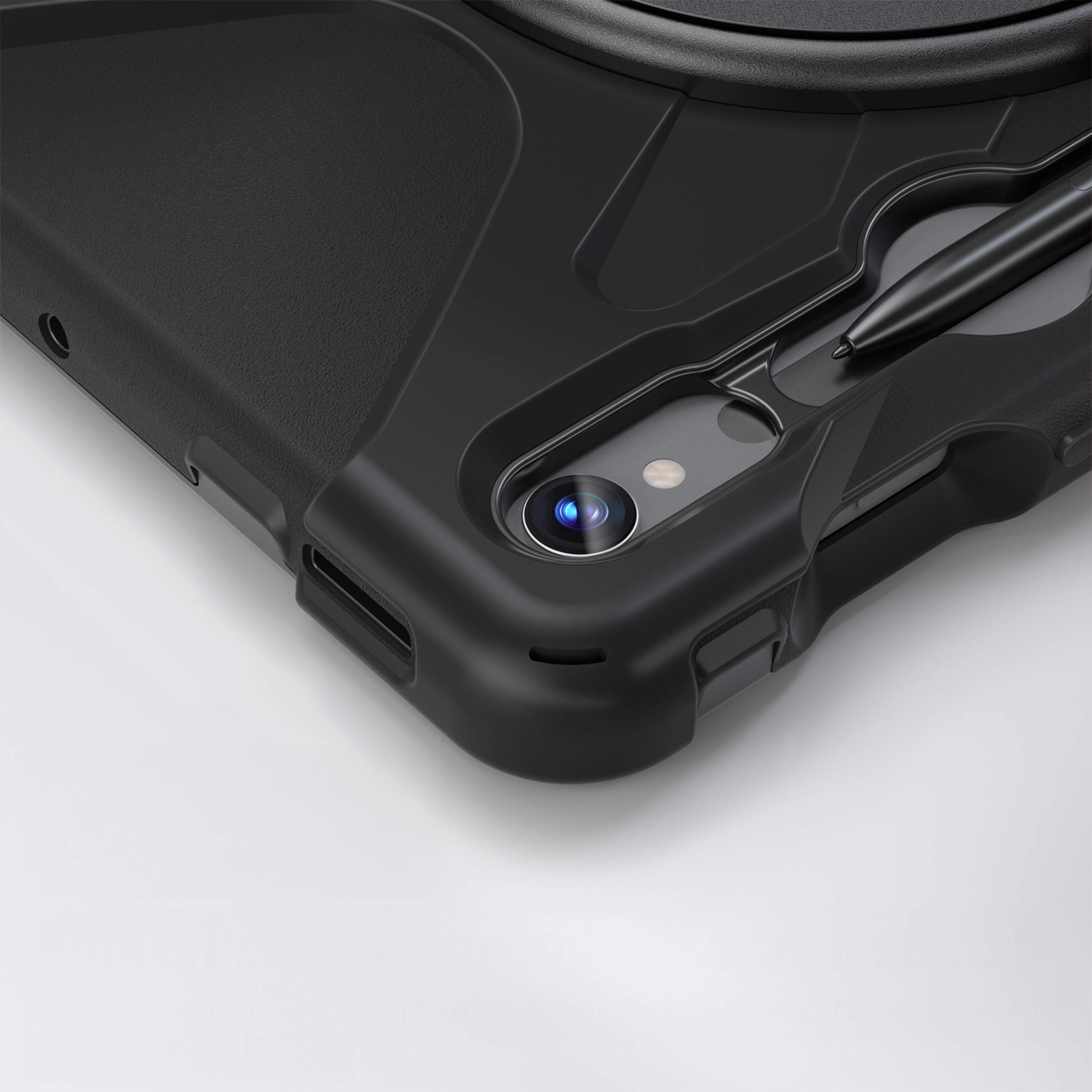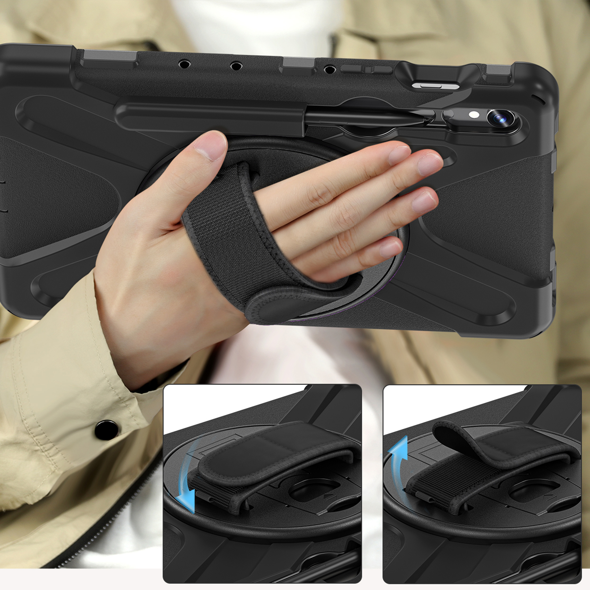 Wytrzymałe etui pancerne Shockproof to niezawodna tarcza dla Twojego tabletu. Dzięki połączeniu materiałów TPU i PC urządzenie jest świetnie zabezpieczone w codziennym użytkowaniu. Konstrukcja zapewnia komfortowy dostęp do wszystkich funkcji, a obrotowa nóżka oraz pasek na dłoń zwiększają wygodę podczas pracy, nauki i rozrywki.