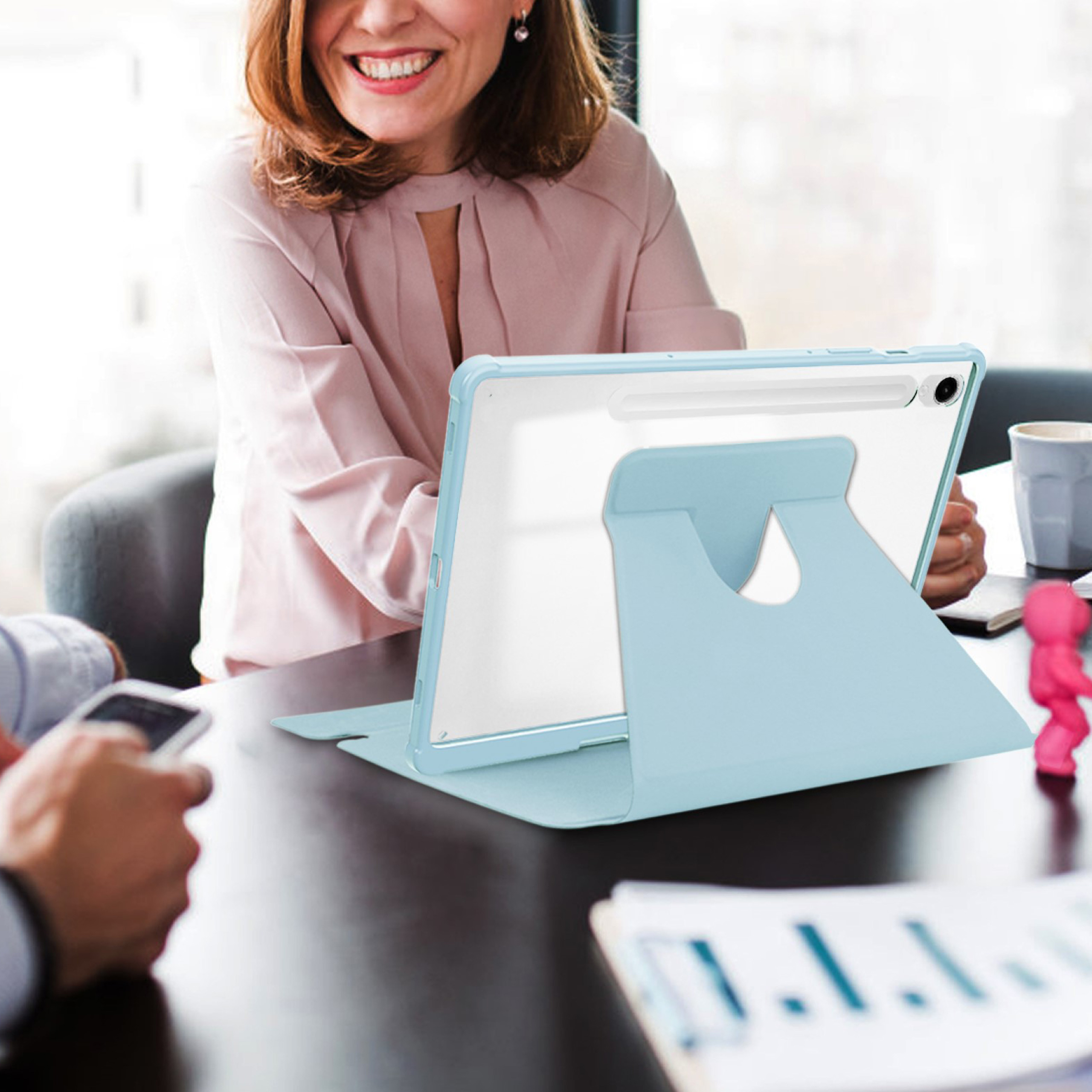 Obrotowa konstrukcja 360° pozwala swobodnie ustawić tablet zarówno w pozycji pionowej, jak i poziomej. To idealne rozwiązanie do oglądania filmów, prowadzenia wideorozmów, pracy biurowej czy prezentacji.