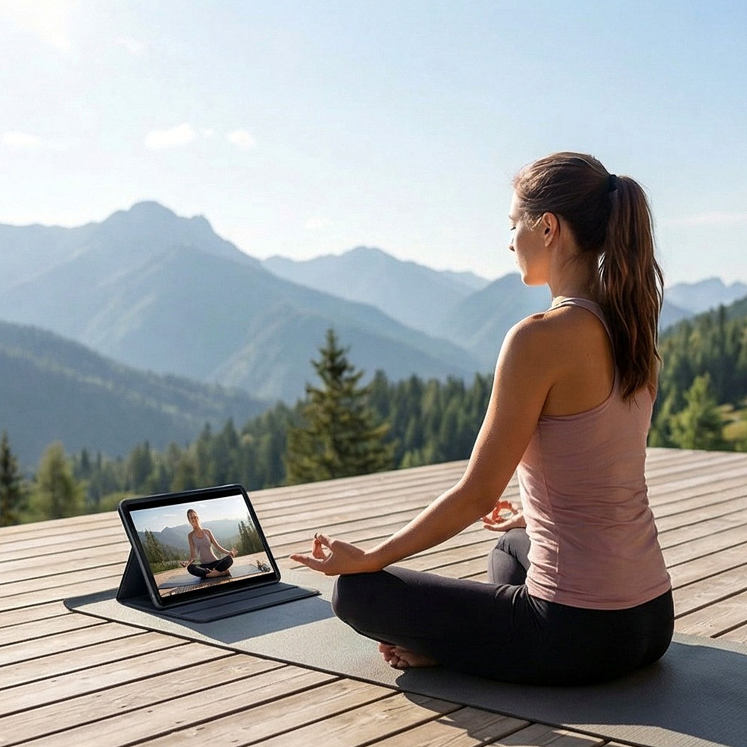 - Funkcja podstawki – możliwość ustawienia tabletu pod kątem 15° lub 60°, idealne do pracy, oglądania filmów czy wideorozmów.