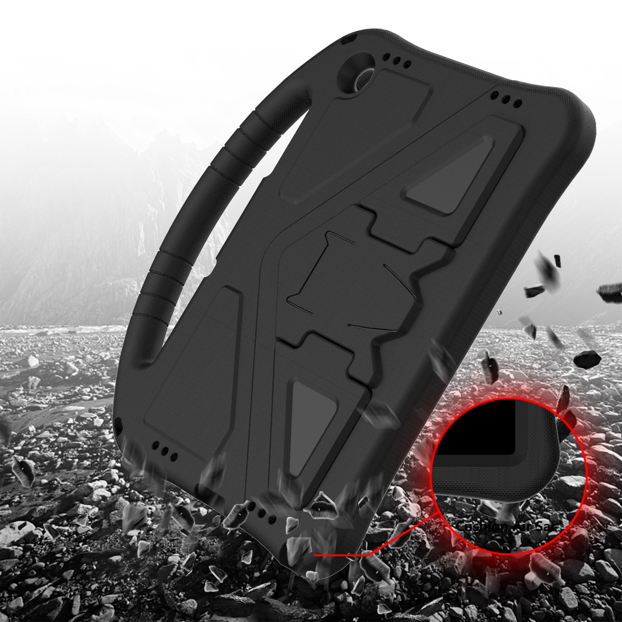 Pancerne etui FunColor wykonane jest z lekkiej, a jednocześnie wyjątkowo wytrzymałej pianki EVA. Materiał ten skutecznie osłania tył oraz boki urządzenia, zapewniając wysoki poziom bezpieczeństwa podczas codziennego użytkowania. Podwyższone ranty chronią ekran nawet wtedy, gdy tablet upadnie ekranem do dołu.