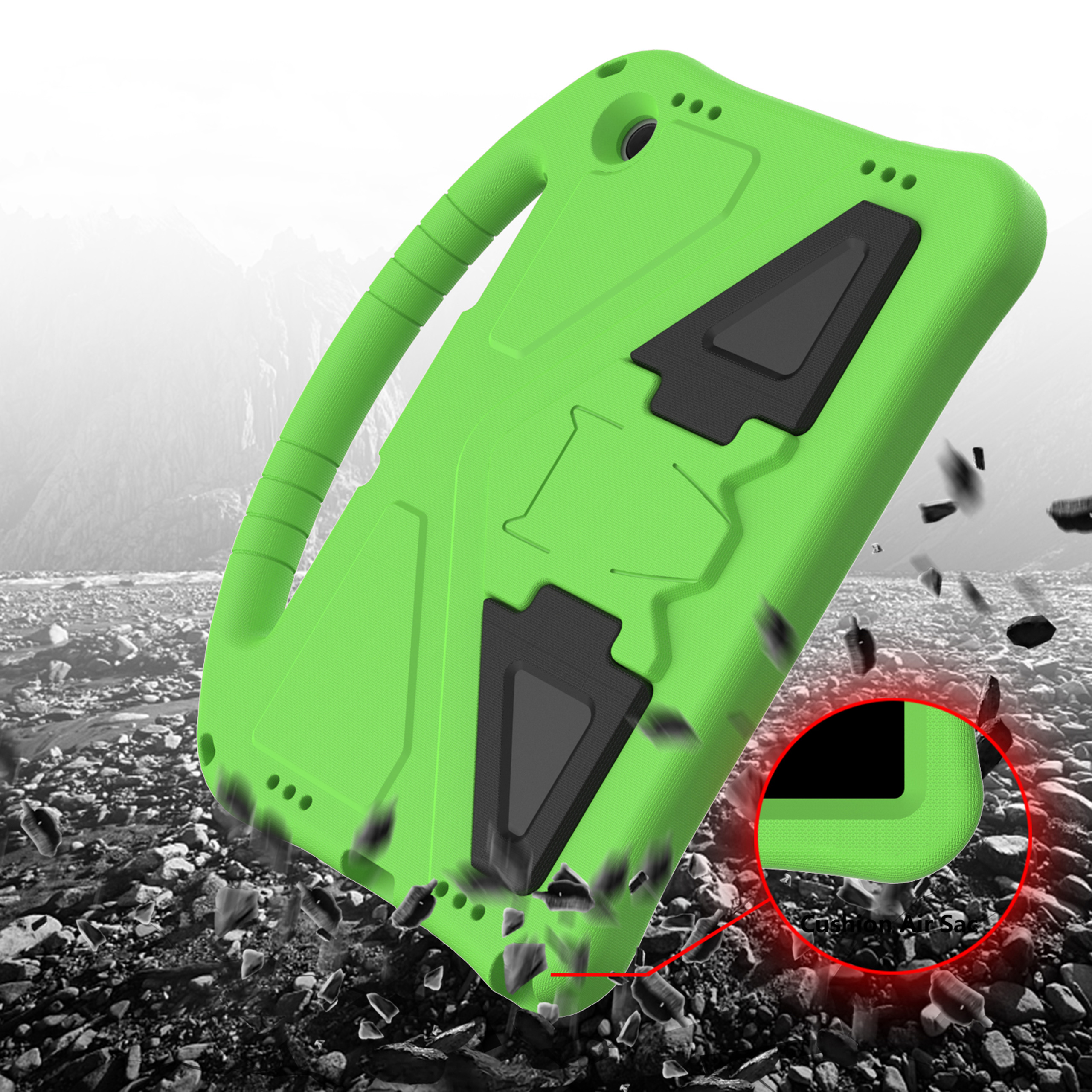 Pancerne etui FunColor wykonane jest z lekkiej, a jednocześnie wyjątkowo wytrzymałej pianki EVA. Materiał ten skutecznie osłania tył oraz boki urządzenia, zapewniając wysoki poziom bezpieczeństwa podczas codziennego użytkowania. Podwyższone ranty chronią ekran nawet wtedy, gdy tablet upadnie ekranem do dołu.