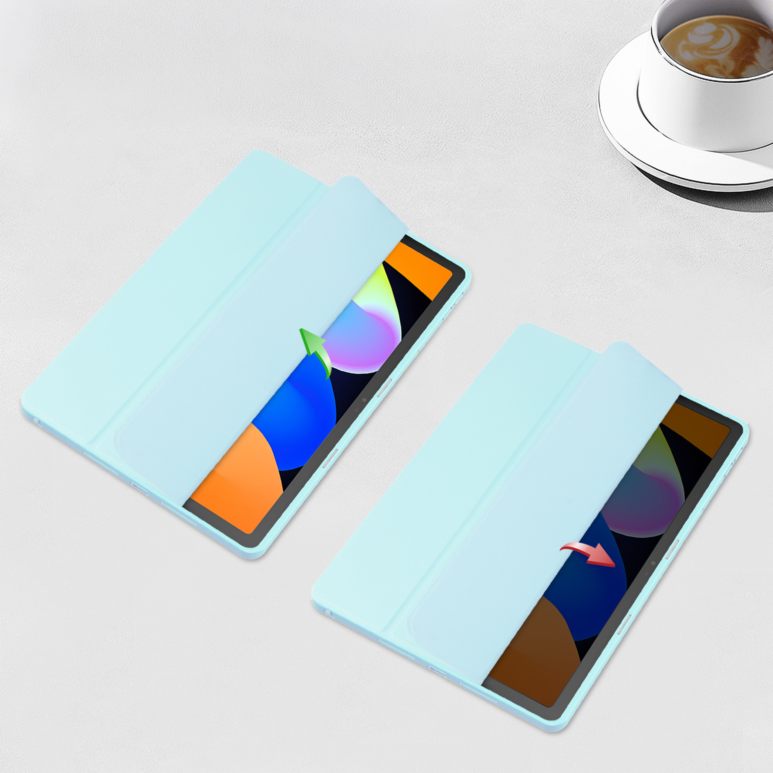 - Funkcja Smart Wake/Sleep – tablet uruchamia się po otwarciu etui i przechodzi w uśpienie po jego zamknięciu.